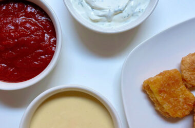 Put a twist on the lunches your kids love with these three sauces designed to be prepped by little hands! Homemade dips provide the opportunity for young chefs to taste individual ingredients and widen their palettes. Serve sauces alongside chicken nuggets, fresh fruit, and favorite vegetables for dipping!