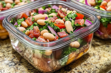 Dress up canned beans with an easy orange and oregano vinaigrette, to make this simple meal prep salad. Plus, its good cold or at room temperature. And of course: BACON.