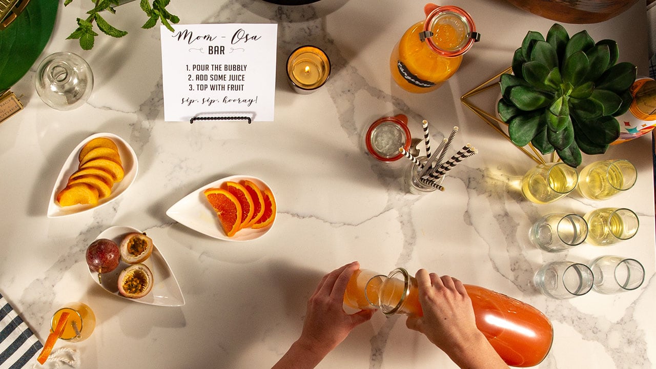 Making the ultimate mimosa bar is easier than you think, and we’ve got the steps to help you create an ultimate brunch celebration at home. (Bonus: It will look great to the friends you invite via Zoom and in any screenshots your guests take.)